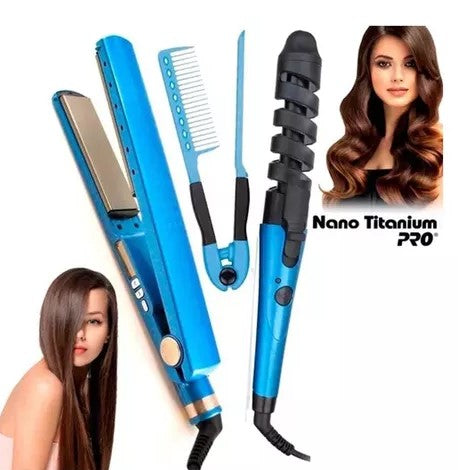 Ahorra $54.901NUEVO COMBO PLANCHA PEINE RIZADOR NANOTITANIUM